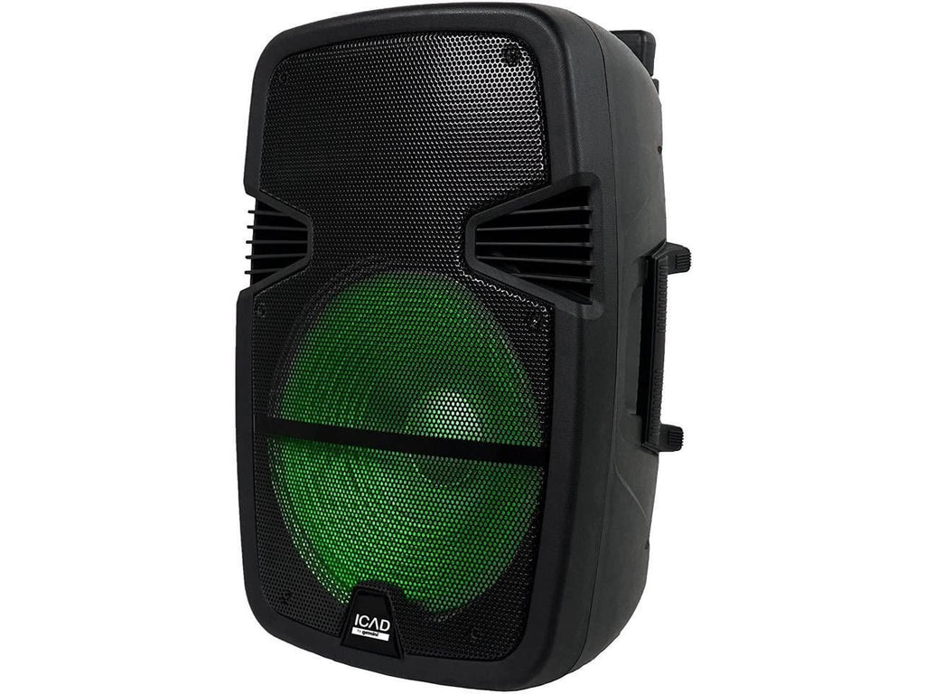 ICAD GSX-L515BTB Wireless Rechargeable Portable Bluetooth LED Party Light Show 15" Woofer 2000W Watts PA System Karaoke Speaker with Remote Control, USB Micro SD AUX FM Radio Inputs, Microphone