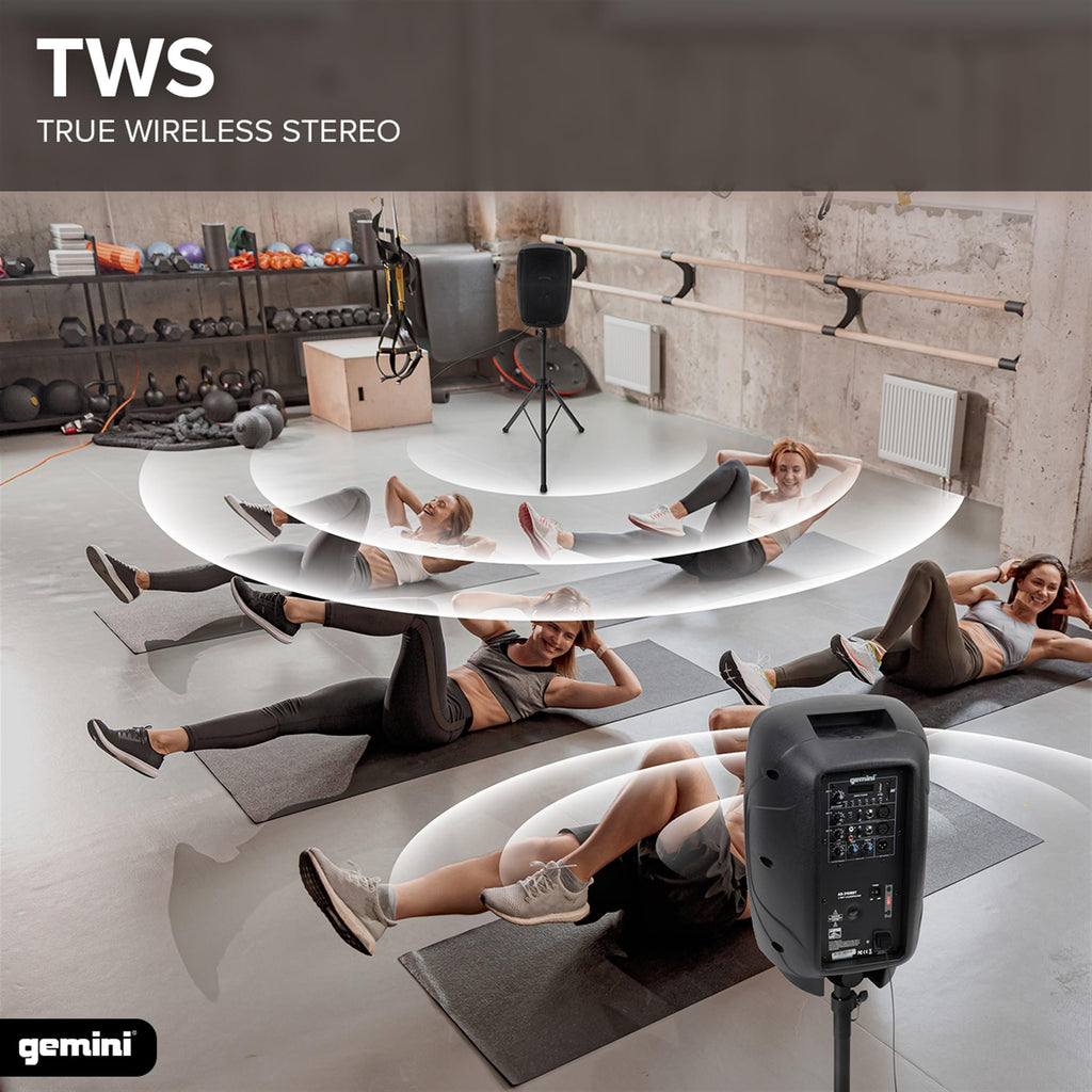 Gemini Sound AS-2108BT Active 8" Inch Woofer 500W Watt DJ Monitor Powered Amplified PA Speakers System With Bluetooth, Wireless Stereo Pairing, Onboard 2 Channel Mixer, Handles and Portable Fly Points