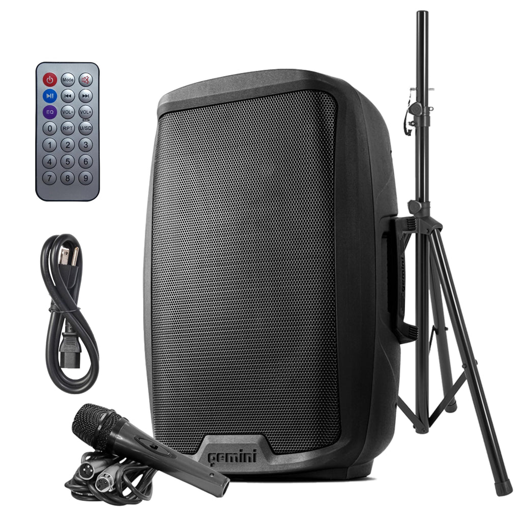 Gemini Sound AS-2115BT-PK 2000 Watt 15 Inch Woofer Professional Active Bluetooth DJ PA Speaker, Stand, Mic and Remote Set with Onboard 3-Channel. TWS Stereo Pairing/Linking and Pro Fly Points