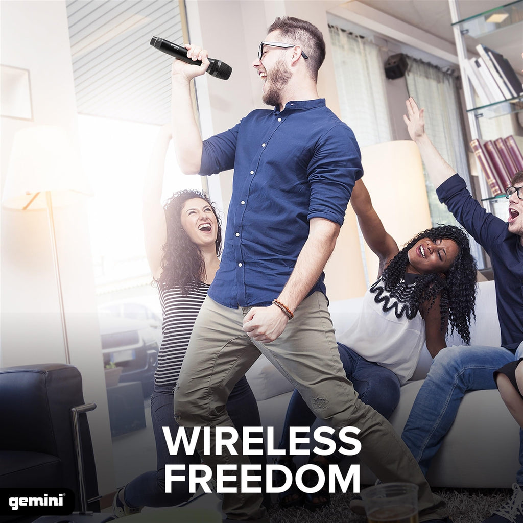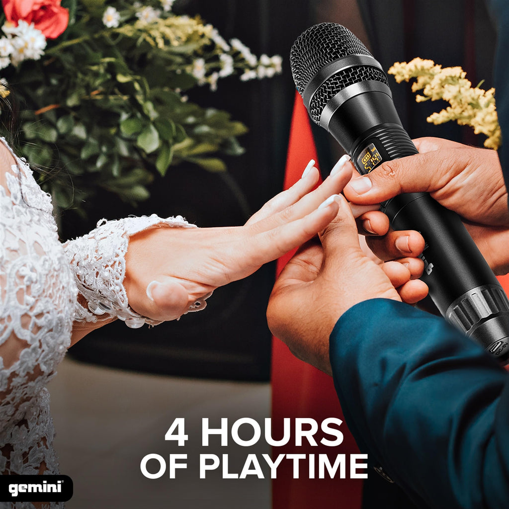 Gemini Sound GMU-M100 Professional Plug & Play Wireless Rechargeable UHF Handheld Microphone with Cordless Self Powered 1/4 Inch Jack Receiver for Mixer or PA Speaker - Karaoke and Live Performance