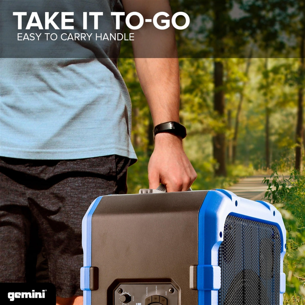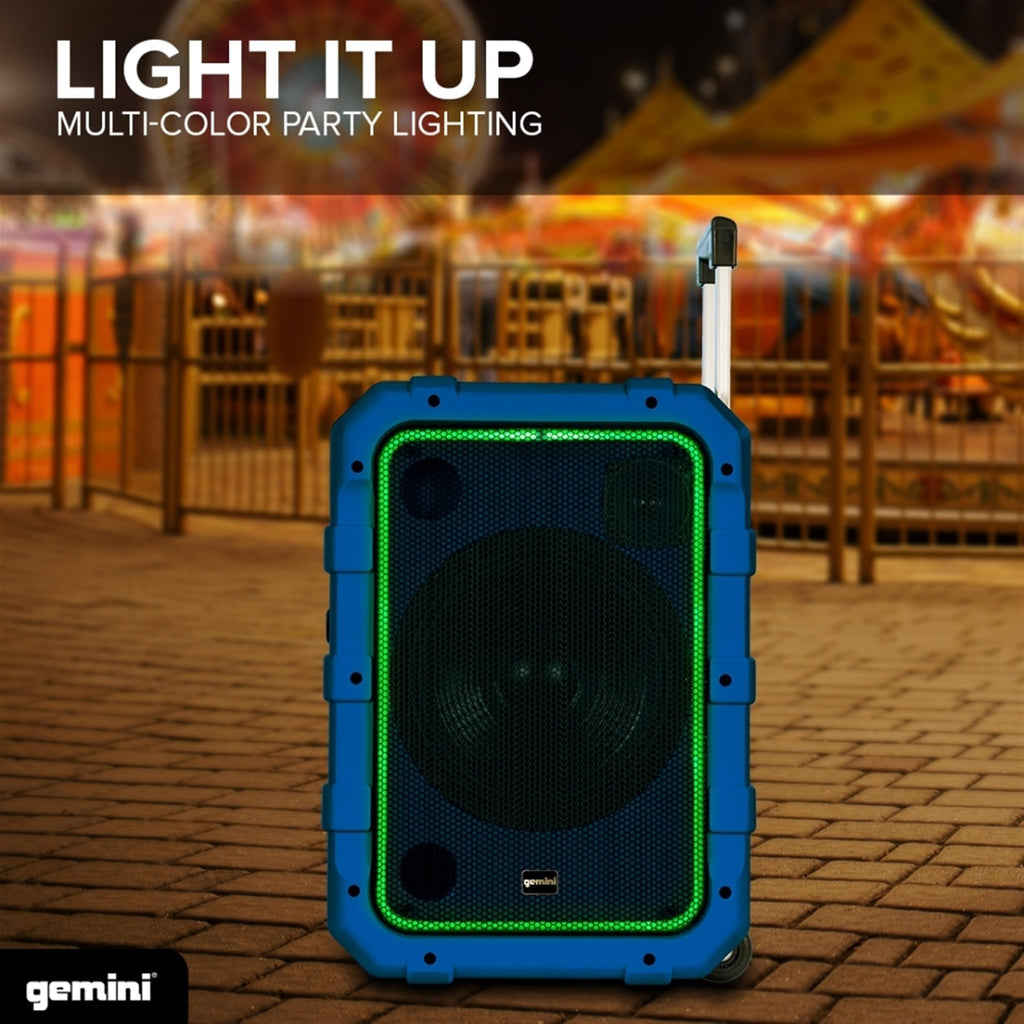 Gemini Sound MPA-2400 Blue 240W Wireless Portable Bluetooth Party Speaker, IPX4 Waterproof, LED Lights, 10” Woofer, Mic/Guitar Inputs, Trolley & Wheels - Perfect for Outdoor Beach Tailgate Parties