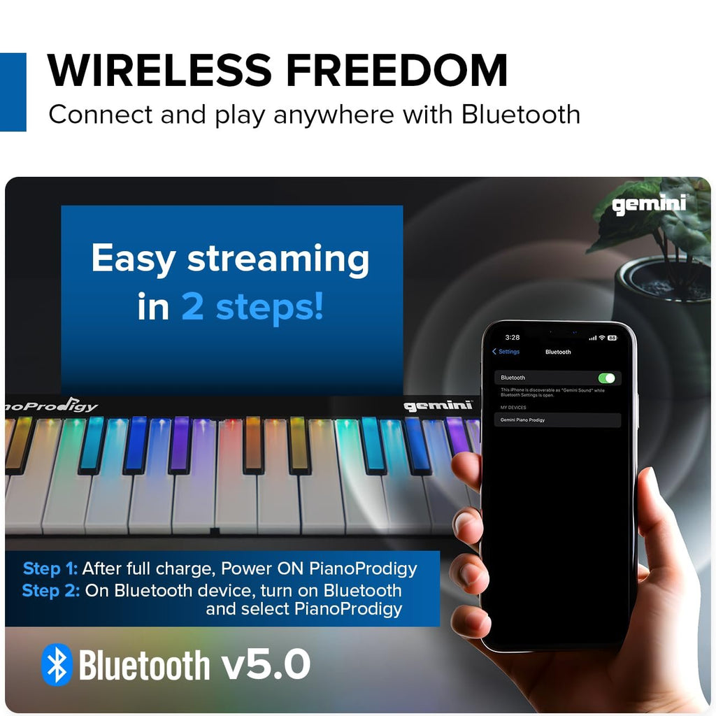 The PianoProdigy GPP-101, a marvel in the realm of keyboard musical instruments, redefines the essence of learning and playing the piano. Designed with precision for both eager beginners and seasoned enthusiasts, this portable keyboard piano stands out as a beacon for those venturing into music production equipment and recording studio equipment. As a light-up keyboard, it illuminates the path for learners, making it an ideal keyboard for practice piano and introducing piano music to novices. Its functionality as a MIDI keyboard controller, coupled with wireless MIDI keyboard capabilities, ensures a seamless integration into any music equipment setup for a home studio. The digital keyboard piano caters to a wide audience, from children seeking a piano for kids to adults exploring musical instruments for adults. The inclusion of a keyboard with a MIDI port opens up a vast landscape for music creation, making it a cornerstone for music studio equipment. Its stature as a beginner keyboard piano does not overshadow its prowess as a professional-grade MIDI piano keyboard, making it a versatile choice for those delving into piano keyboards as part of their musical exploration. This portable MIDI keyboard, which doubles as a keyboard piano for beginners, is a testament to the fusion of technology and traditional music, offering a portable piano that champions the cause of music keyboard aficionados everywhere.