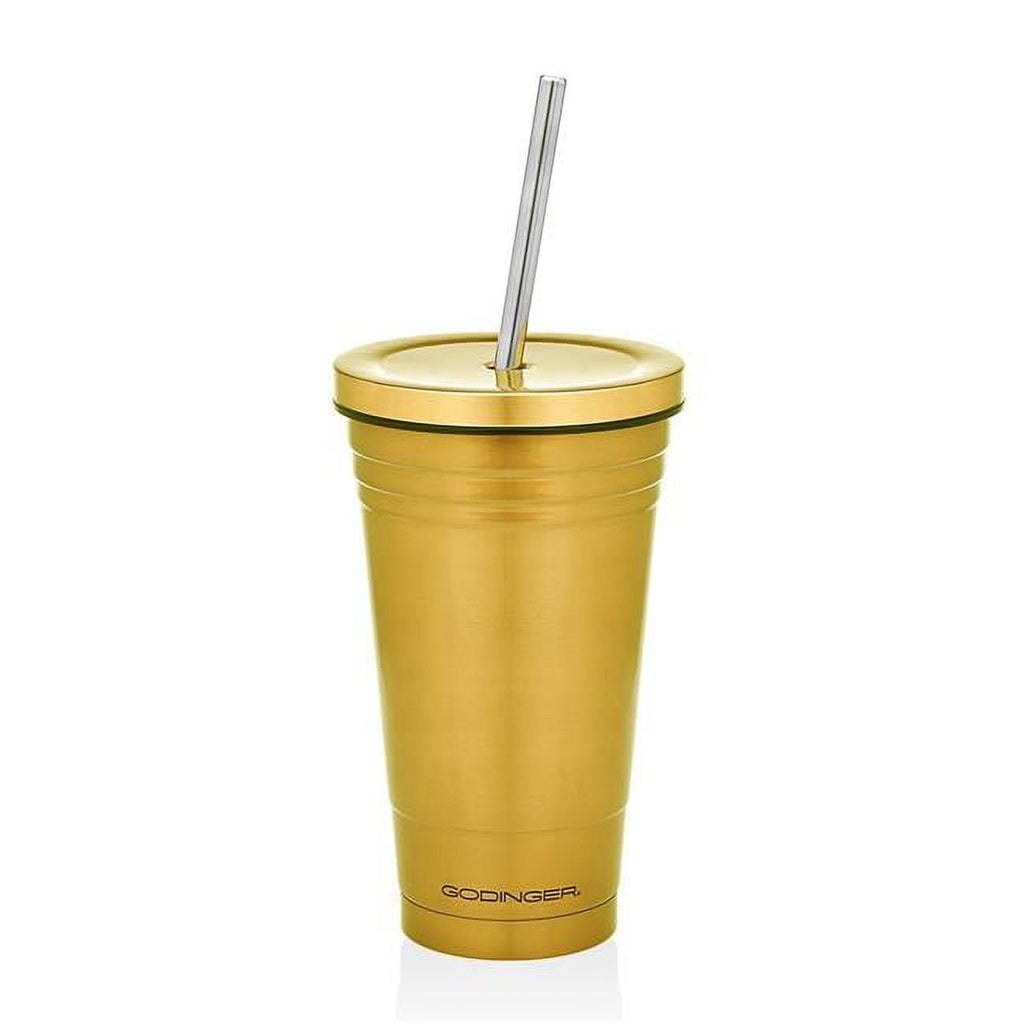Godinger Dwindle Stainless Steel Gold Cup With Straw 18Oz