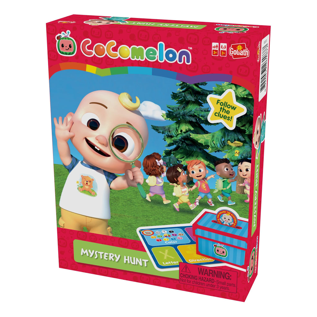 Goliath CoComelon Mystery Hunt Game - Follow The Clues and Guess The Object - Ages 3 and Up, 2 or More PlayersUncover the mysteries right inside your own home!Select an object in your home for other players to guessUse the wipe away board to provide clues about the color, shape, size, location, and the first letter of the itemWhoever guesses correctly gets to put a coin in their Mystery ChestAssembly required to build Mystery Chests - game includes 1 Mystery Map, 1 Wipe Away Marker, 2 Mystery Chests, 12 Hint Coins, and Complete InstructionsRecommended for 2 or more players, ages 3 and up