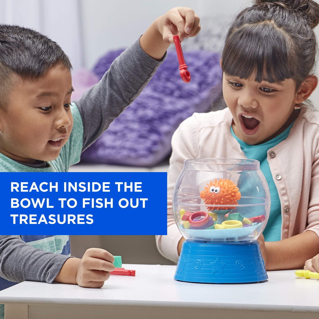 - EXCITING GAME FOR KIDS: The excitement grows as kids fish out the included plastic treasures, and try not to upset the blowfish, making it inflate