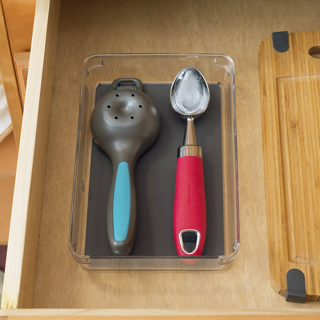 Home Basics 6" x 9" x 2" Plastic Rubber Liner Drawer Organizer, One Size, Clear