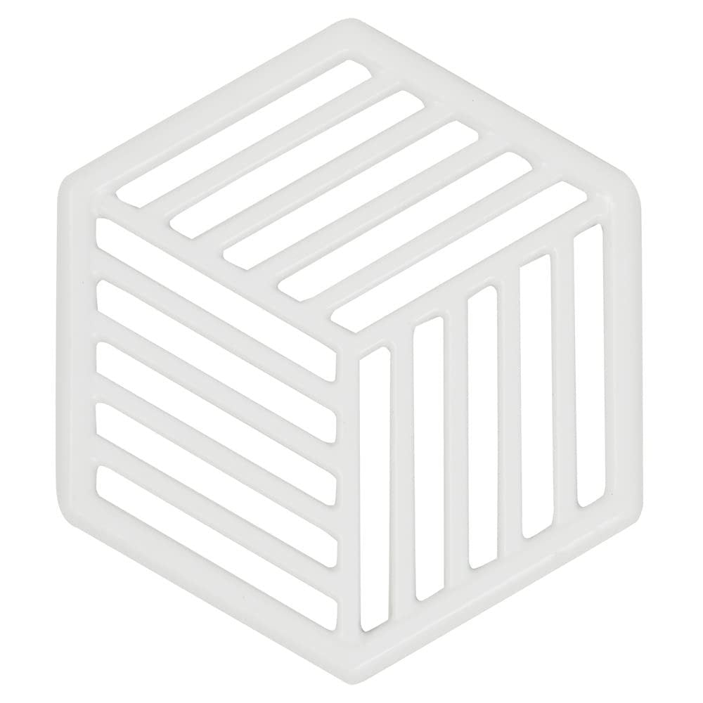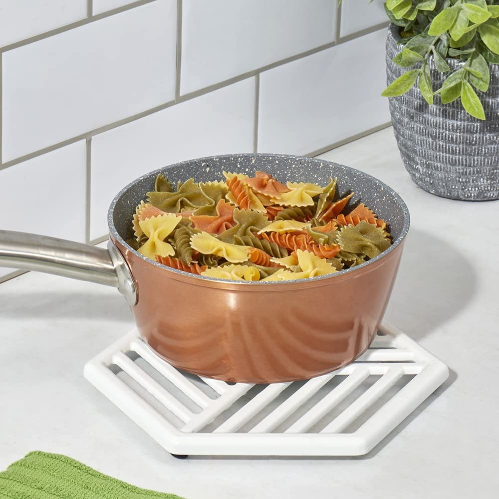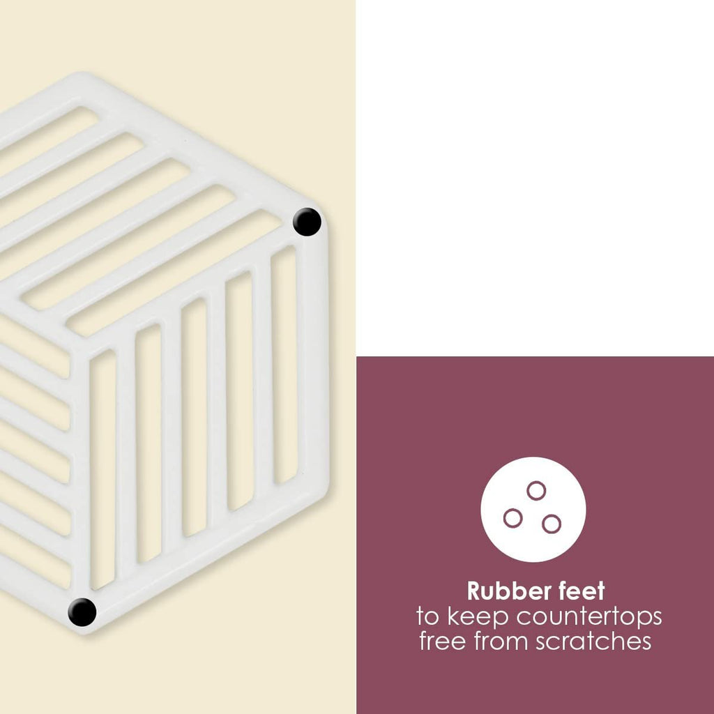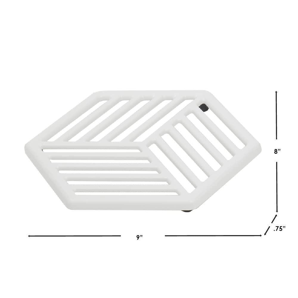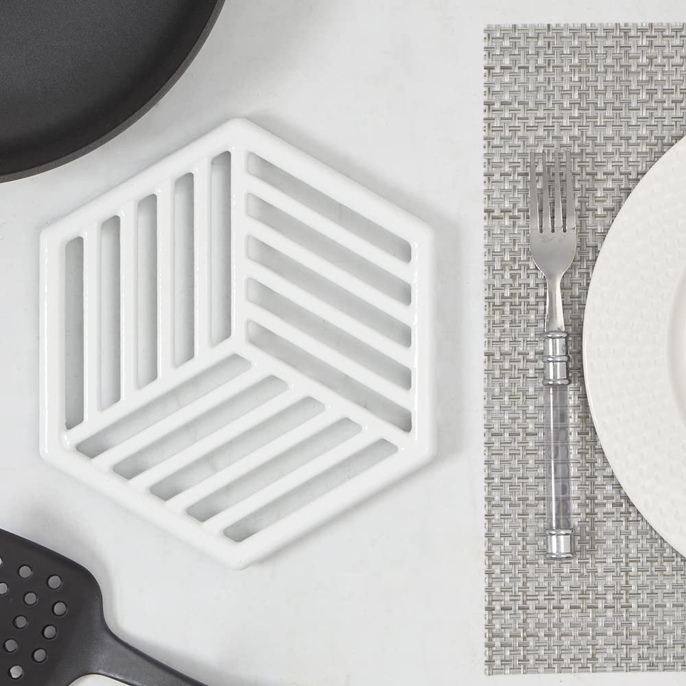 Home Basics Lines Cast Iron Trivet | Protects Kitchen Countertops | Enamel Coated Finish | Great for The Table or Under a Plant (White)
