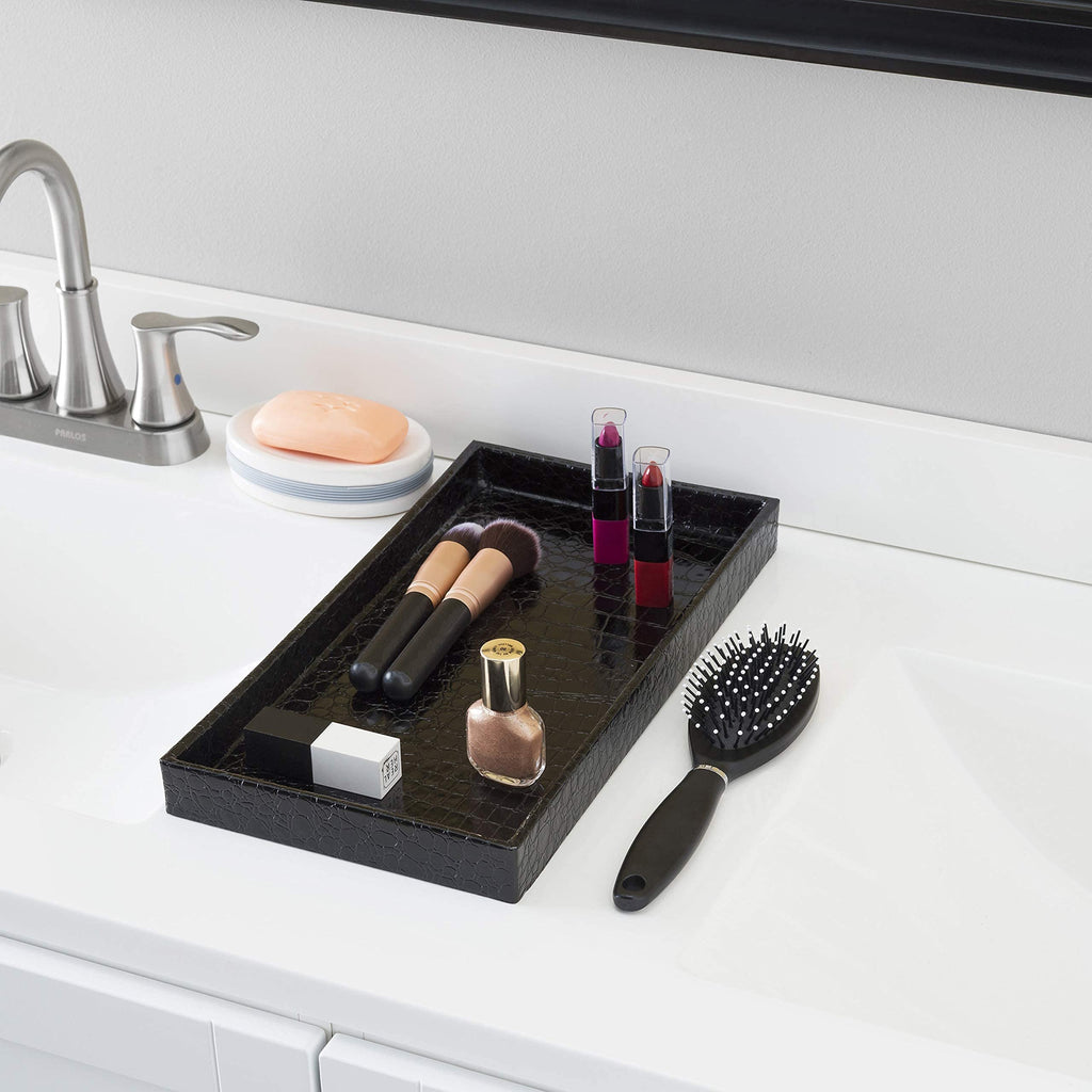 Home Basics Vanity Tray for Makeup, Jewelry, Perfume, Cosmetics Storage, Bathroom Organizer (Horizontal, Crocodile Black)