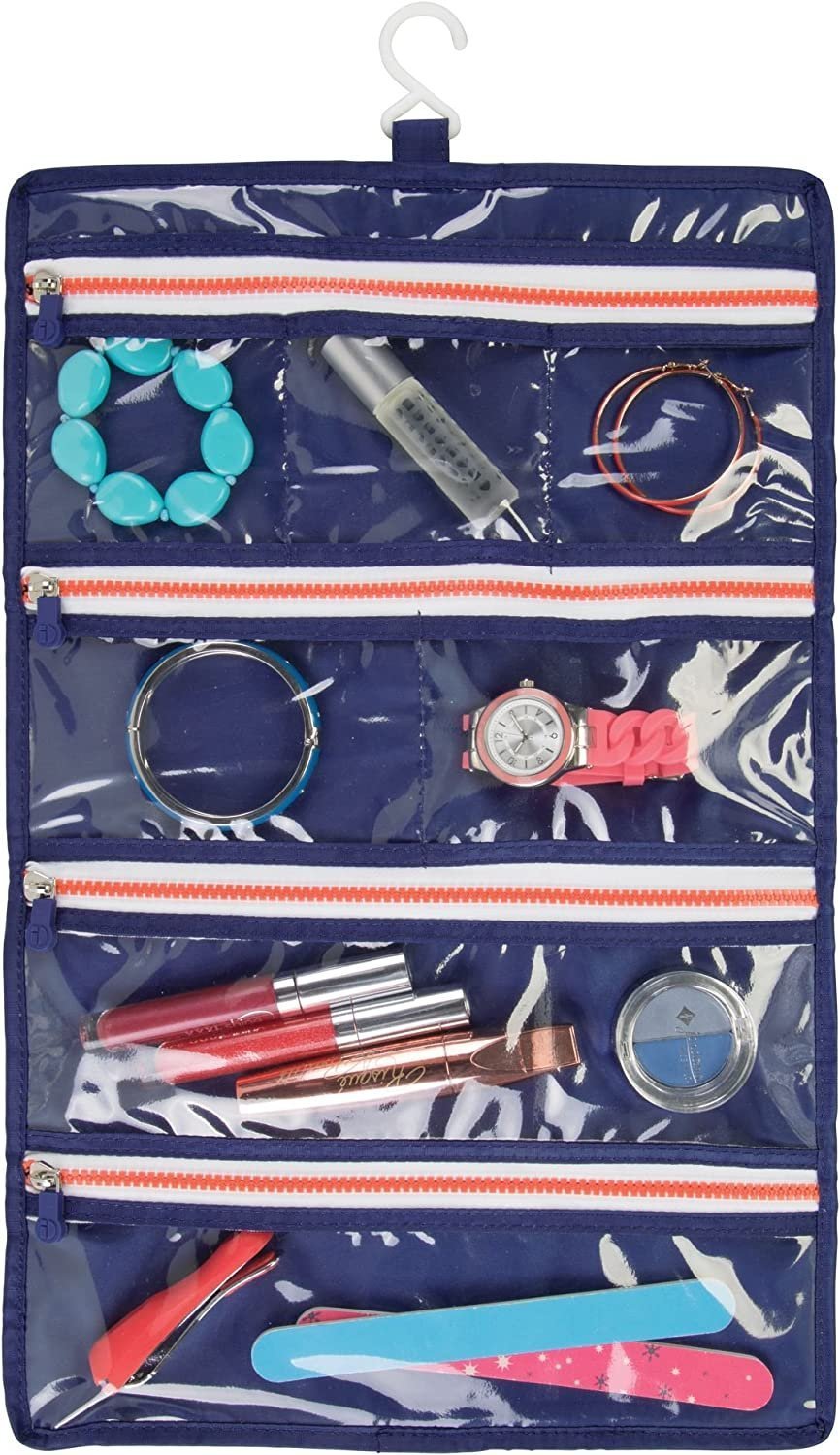 iDesign Roll-Up Jewelry Case Travel Bag, Navy/Orange