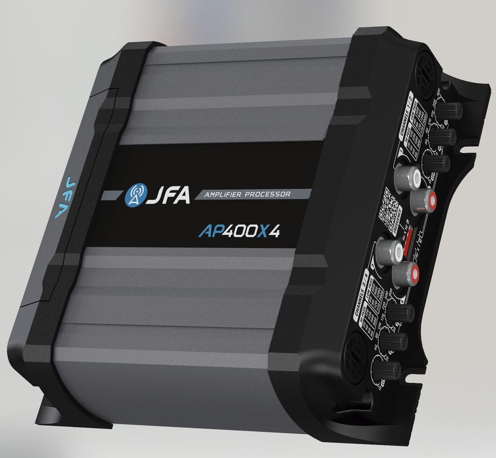 This powerful 4-channel car amplifier from JFA delivers 400 watts of crisp, clear sound. Featuring a compact yet robust design, it easily fits under seats or in trunks while handling heavy bass with precision. The amplifier's multi-channel capability drives 4 speakers with individual volume and tone controls for each channel. Whether you want to upgrade your vehicle's Or Motorcycle factory system or build a show-worthy custom setup, this amp delivers performance inside and out. With its stable of protective features like overload protection and thermal shutdown, it reliably drives even the most demanding audio configurations. By Soundigital