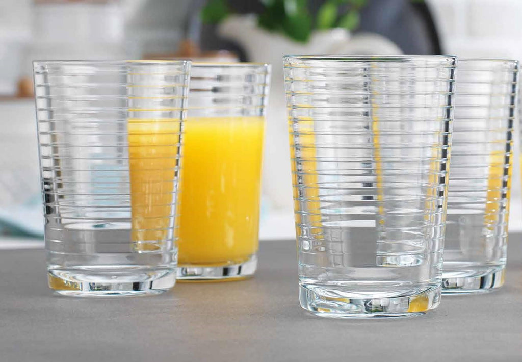 - PRACTICAL AND ELEGANT DESIGN: Our Glass cups have a simple yet elegant and modern design, that will make a beautiful addition to your glassware set. These juice glasses have a thin mouth and sturdy construction, not too heavy nor to light for comfortable drinking and easy grip.