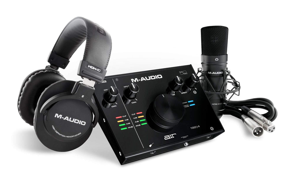 M-Audio USB C Audio Interface, XLR Condenser Microphone and Studio Headphones for Recording, Podcasting, Streaming with HD Sound - AIR192x4 VSPro