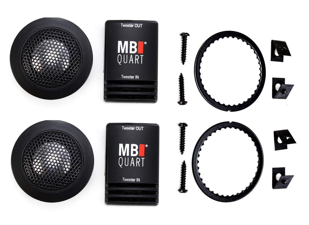 MB Quart DT1-25 Discus Tweeters with Crossover, 1-Inch, Set of 2Two 25mm Titanium Dome TweetersIn-Line CrossoverMounting Hardware for Flush or Angle MountsAdds High Frequencies to Your Overall System