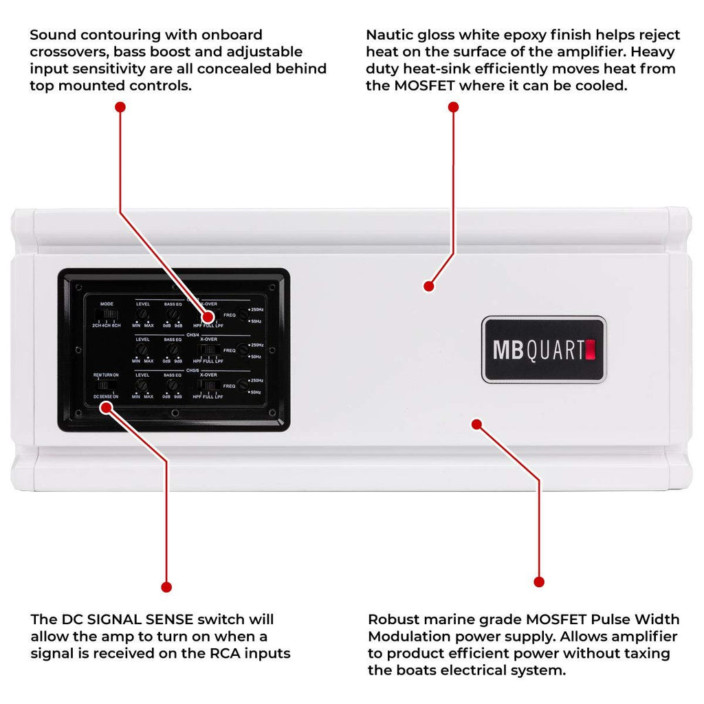 MB Quart Nautic Amplifier NA3-600.6 - Nautic Marine, 600 Watts, 4 Channel, Marine Amplifier, Speaker, Heat Sink, Ipx Standard, Marine Grade,Multicolored