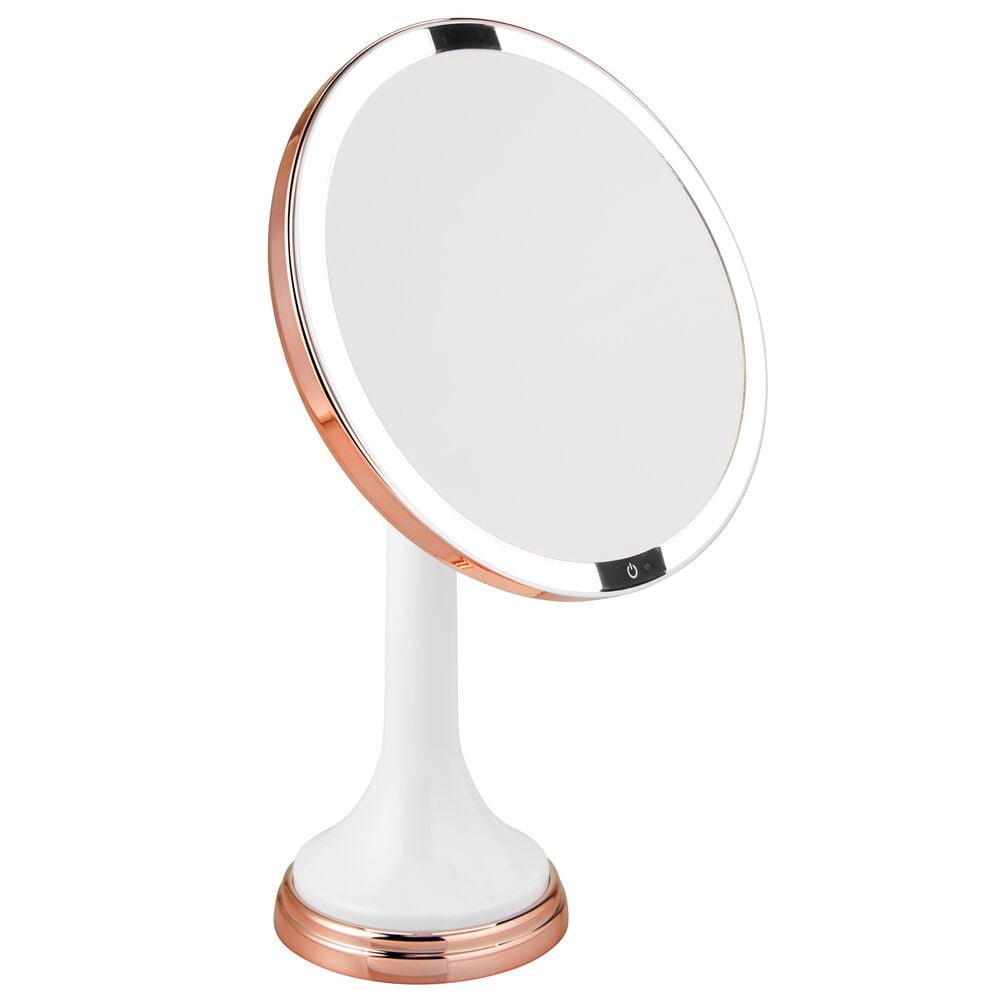mDesign Modern Motion Sensor LED Lighted Makeup Bathroom Vanity Mirror, Large 8" Round, 3X Magnification, Hands-Free, Rechargeable and Cordless - White/Rose Gold