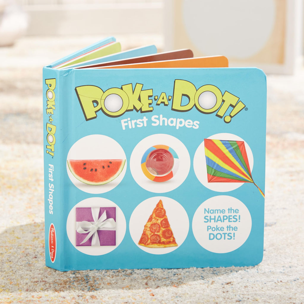 Melissa & Doug Children’s Book – Poke-a-Dot: First Shapes (Board Book with Buttons to Pop)10-page interactive sturdy board book with buttons to press and pop on every pagePoke the dots while identifying full-color photos of familiar objects and their shapes (circle, triangle, diamond, etc.)Poke-a-Dot books encourage language development, color recognition, and fine motor skillsDots make different clicking and popping sounds depending on how they're pokedMakes a great gift for babies and toddlers, ages 1 to 3, for hands-on, screen-free play