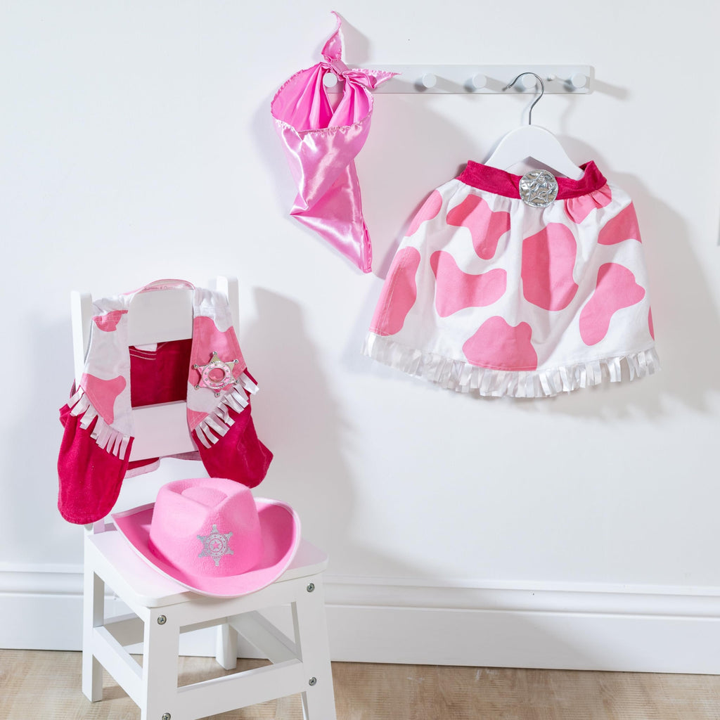 Melissa & Doug Cowgirl Role Play Costume Set (5pcs) - Skirt, Hat, Vest, Badge, Scarf Pink, Child 3-6