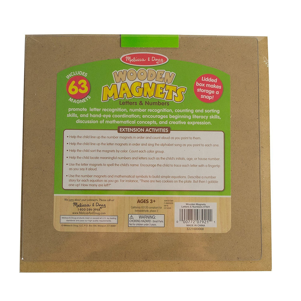 Melissa & Doug Magnets-in-a-Box Letters & NumbersIncludes 63 Magnetic LettersEach set is housed in a sturdy wooden case with a see-through, slide-shut lid.High-contrast Color, Multiple Modes of Play2-5 Players