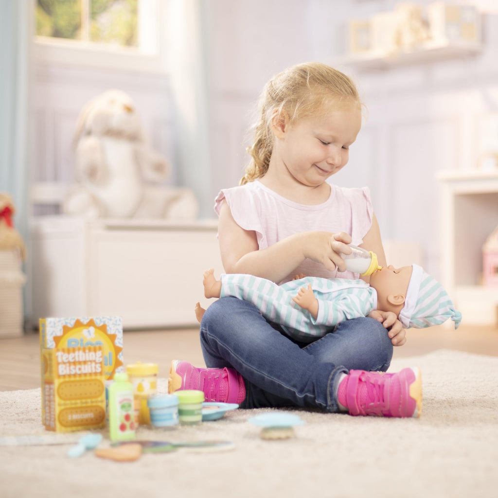 - 24-piece realistic baby feeding accessories sized just right for dolls and stuffed animals