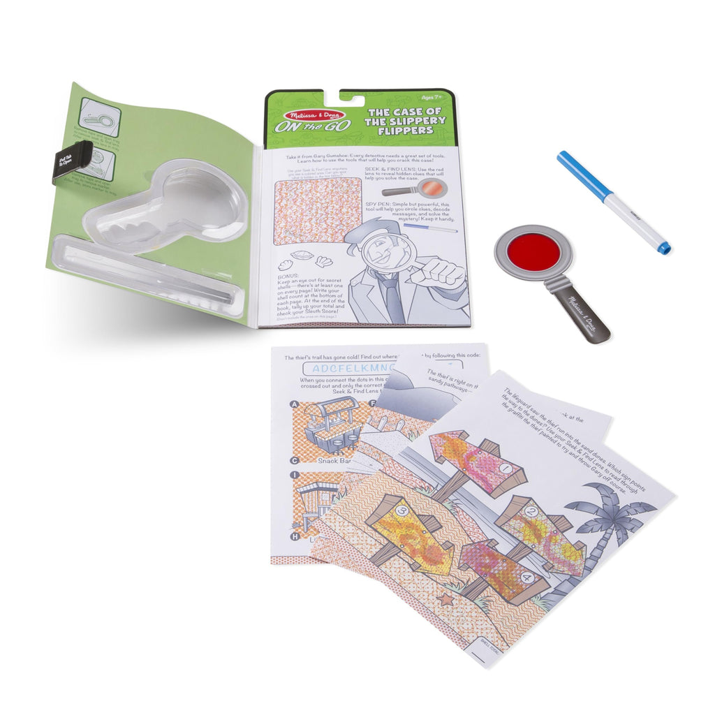 Melissa & Doug On the Go Secret Decoder Activity Book - The Case of the Slippery Flippers24 pages of seek-and-find coloring activities"Magic" pen stores right in the cover!Surprise pictures appear as you color!Perfect for travelPromotes fine motor skills, pre-writing skills, and visual discrimination.Perfect for a stocking stuffer