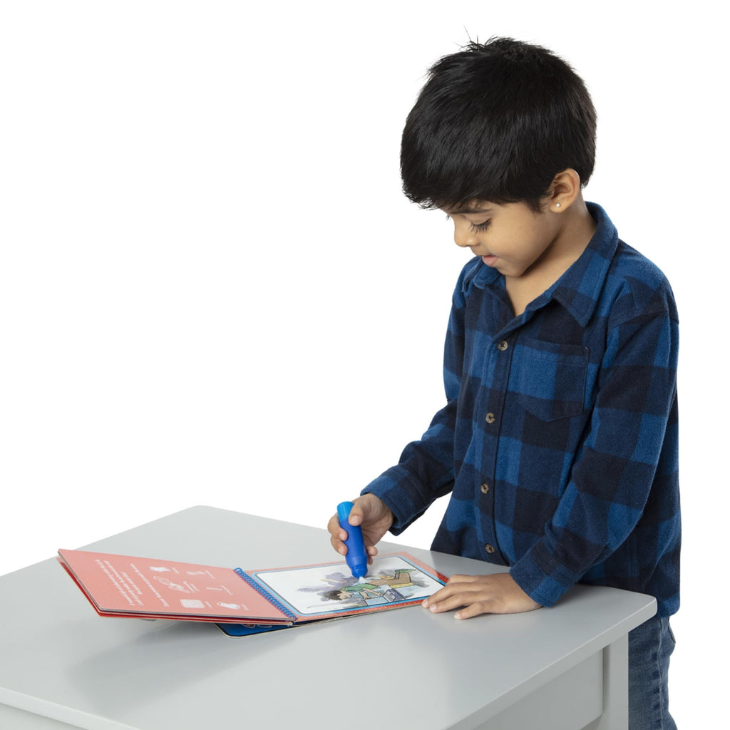 - Chunky-size water pen is easy to fill, easy to hold, stores in compact, spiral-bound book--great for travel