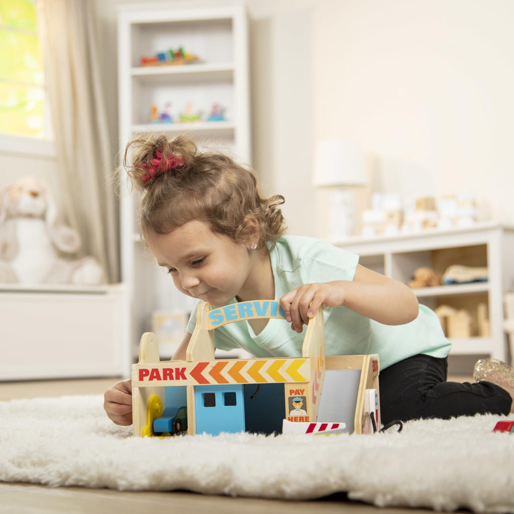 - GREAT GIFT FOR KIDS 3 TO 6: This Service Station Parking Garage is an ideal gift for kids ages 3 to 6. Add the Melissa & Doug Mega Race Car Carrier to round out the pretend play experience and give kids an engaging option for screen-free fun.