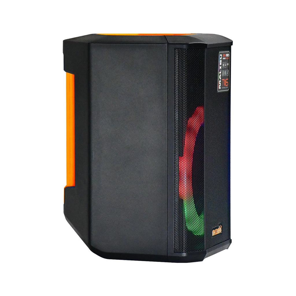 Moonki Sound Malibu - Portable Bluetooth Speaker for Party (Orange)Experience audio like never before with the Moonki Sound Malibu Portable Party Speaker, designed to elevate every gathering with its dynamic LED ring effects and powerful sound performance.Immersive LED Experience: Elevate your party atmosphere with the mesmerizing LED ring that pulsates to the beat of your music, adding an electrifying ambiance to any occasion.Powerhouse Performance: Boasting a whopping 500W of power, the Moonki Sound Malibu delivers room-filling sound that ensures every note, beat, and lyric is heard with crystal clarity, making it perfect for indoor and outdoor gatherings alike.Seamless Connectivity: Featuring Bluetooth 5.0 with TWS connectivity, effortlessly pair multiple speakers for a truly immersive stereo experience, while the 3.5mm auxiliary input ensures compatibility with various devices for non-stop entertainment. It also has a 6.35mm microphone input to make your parties more lively.Dynamic Audio Drivers: Equipped with a 5.5” woofer and a 1.41” tweeter, the Moonki Sound Malibu delivers a balanced audio profile with deep bass, clear highs, and immersive midrange, ensuring every song is delivered with precision and depth.Personalized Style: Available in a range of vibrant colors, choose the Moonki Sound Malibu that matches your personality and style, adding a touch of flair to your audio setup.Long-lasting Battery Life: Keep the party going for hours on end with the built-in 7.4V / 1800mAh lithium battery, offering approximately 5 hours of continuous playtime on a single charge, ensuring uninterrupted entertainment wherever you go.