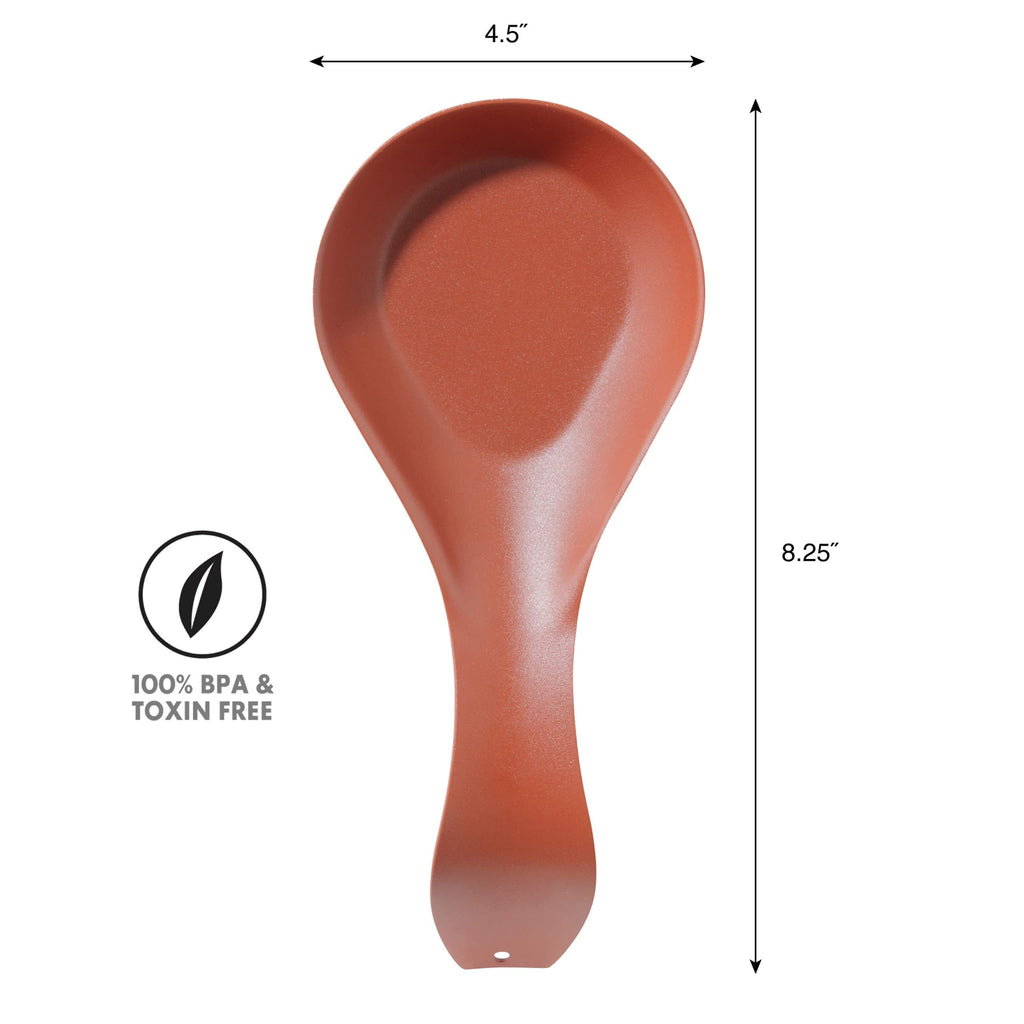 OGGI Stainless Steel Spoon Rest- Long Handle Holds Kitchen Utensils in Place, Great Spoon Rest for Kitchen Counter, Stove Top, or Coffee Station; Kitchen Accessories, Utensil Rest, Brick red