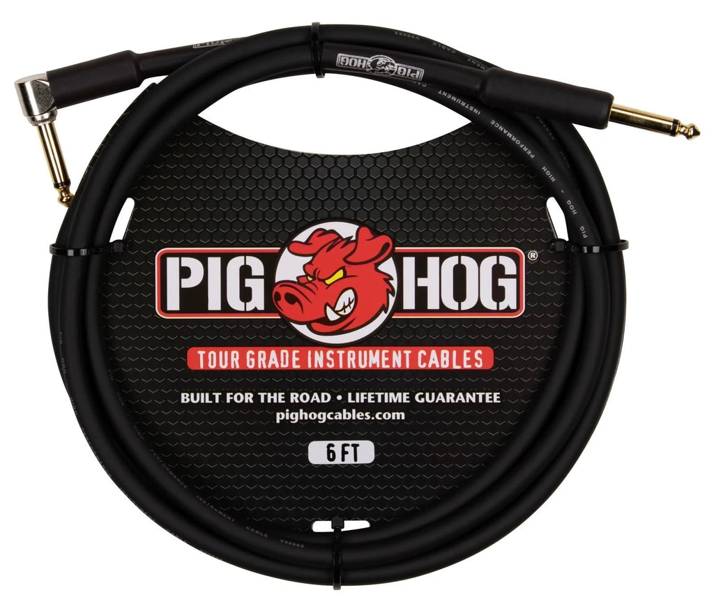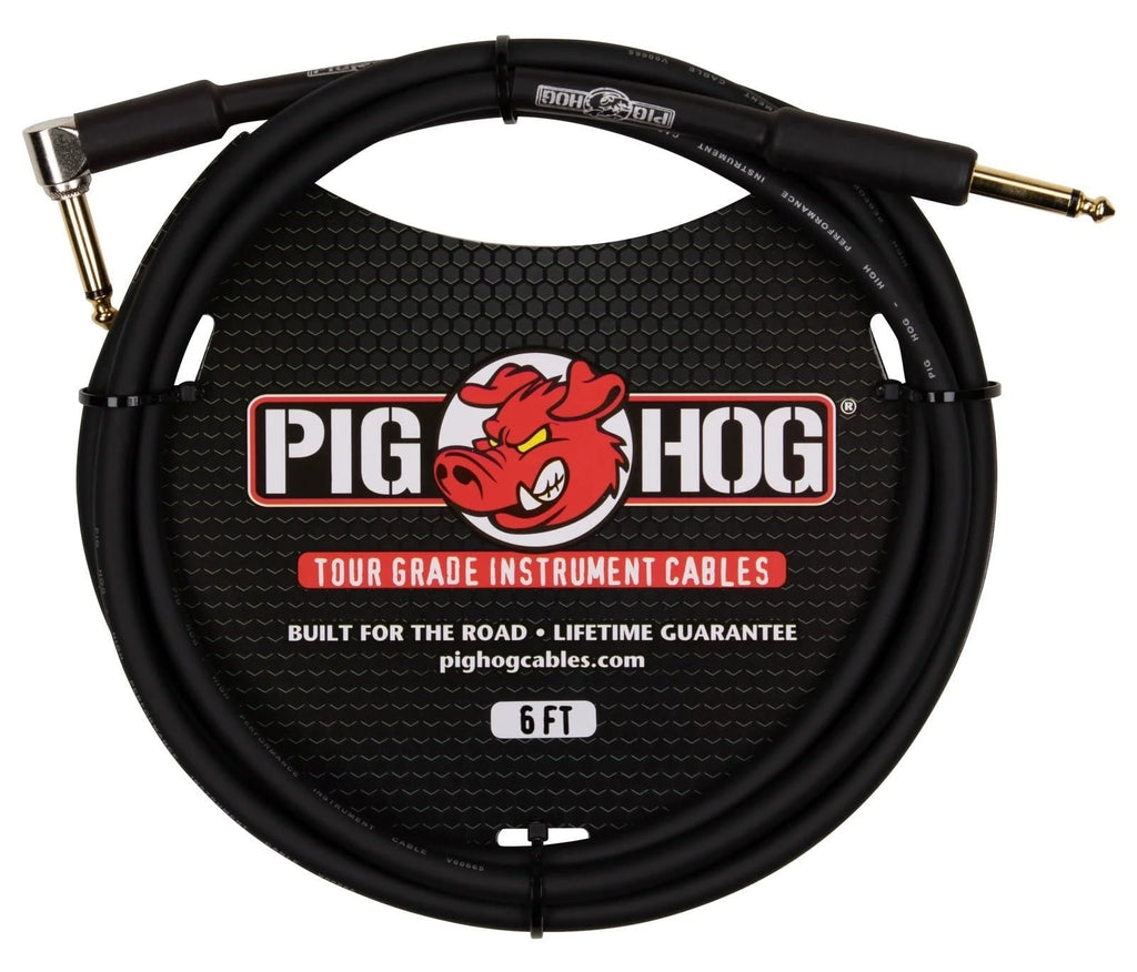 Pig Hog PH6R 6-feet 1/4" - 1/4" Right Angle Connector 8mm PVC Outer Covering Instrumental Cable Resists Kinking Tangling