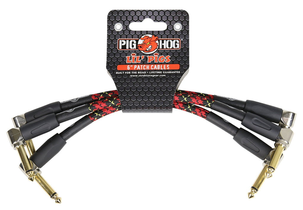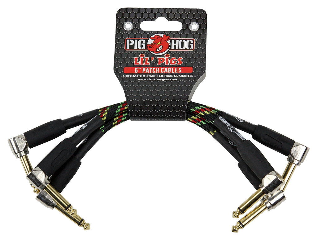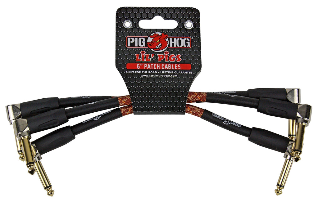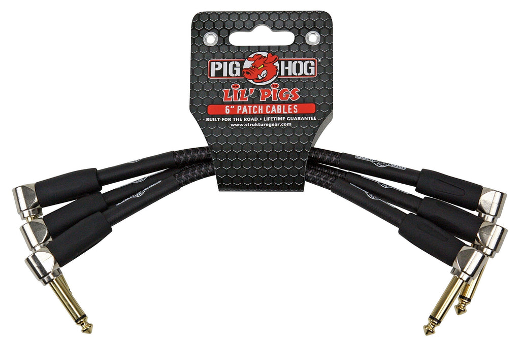 Pig Hog PHLIL6DB Lil' Pigs Right-Angle 1/4" Vintage Daphne Blue Instrument Patch Cables, 6" (3 Pack)