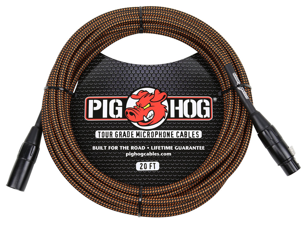 Pig Hog PHM20ORG Black/Orange Woven High Performance XLR Microphone Cable, 20 Feet High performance mic cable Unique, high quality, Woven Outer Covering Xlr - XLR connectors Lifetime