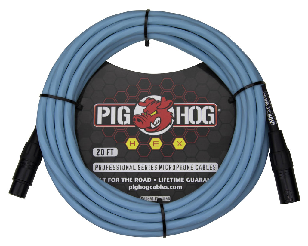 Pig Hog PHMH20DB Hex Series Mic Cable, Daphne Blue 20ft