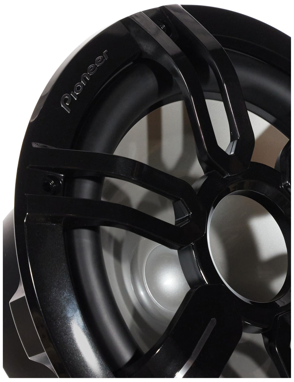 PIONEER CAR TSME100WS Single 10 inch 900 Watt Max Power, IPX7 Rated, Sports Grille Design - Marine Subwoofer White and Black Sports Grilles IncludedSingle Woofer with two different color grills both black and white || * Size: 10-in . * Design: 10-in Component Subwoofer. * Woofer Composition: Injected Molded Polypropylene . * Woofer Surround: Trex Plane. * Woofer Magnet Composition: Ferrite. * Warranty (must be purchased from an Authorized Pioneer Dealer): 1 Year || Marine || * Water Resistant: IPX7. * UV Resistant: ASTM D4329. * Grille Style: Black and White Sports Grilles Included ||Installation Specification || * Max. Music Power (Nominal): 300W RMS / 900 W PEAK. * Frequency Response: 20 Hz to 3.5 kHz. * Sensitivity (1W/1 m): 84 dB. * Impedance: 4 Ohms. * Mounting Depth: 5-in (126mm). * Cut-Out Dimensions: 8-7/8-in Dia. (f225mm). * Free Air Operation: Yes.ME-Series Marine Entertainment Combining Pioneer Sound Quality with All-Weather Durability. Pioneer's ME-series marine subwoofers are protected from the effects of sun and water exposure, meeting both IPX7 & ASTM D4329 to achieve all-weather reliability. Utilizing a Mica reinforced IMPP(TM) monocoque cone and a butyl rubber surround, they are constructed using advanced in-mould bonding techniques, meaning they have superior water resistance whilst maintaining high quality and a powerful sound.Internally, a symmetrical motor design combined with high strength suspension optimises stability, linearity and clear, low distortion sound reproduction. || The TS-ME100WS comes with both white and black pearlescent sports grills, so you can match your cabin interior and lifestyle. ||If you want to personalise and add an extra touch of colour, Pioneer created the optional UD-ME100LED RGB LED illumination light kit, sold separately, that can illuminate the colour of the woofer to any colour you like. || Pioneer's TS-ME100WC ME-Series speakers are 900 W Max. / 300 Continuous Power Handling (RMS), and are a perfect match with the Pioneer ME-series amplifiers and ME-series speakers.