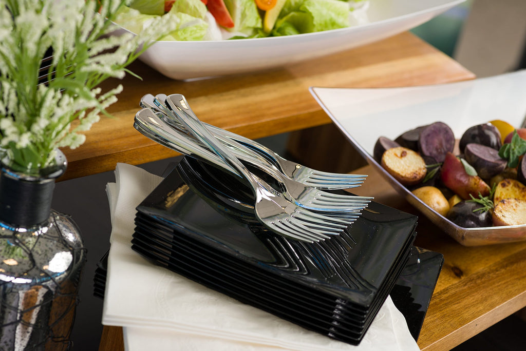 Plastic Cutlery Silverware Extra Heavyweight Disposable Flatware, Full Size Plastic Cutlery Like Silver Combo Pack