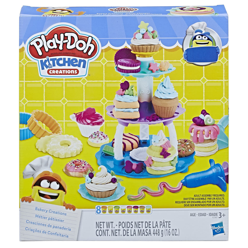 - With the cupcake tower and play food tools in this Play-Doh set, budding bakers have 20 Play-Doh tools to make the most colorful crazy cakes, cookies, and cupcakes imaginable!
