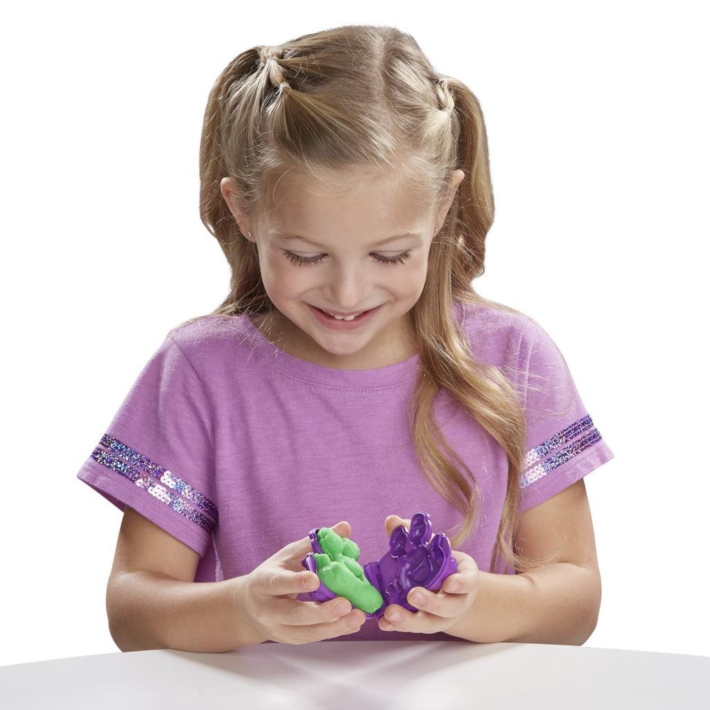 - 8 PLAY-DOH CANS: 2-ounce cans of green and silver colors plus 1-ounce cans of red, dark blue, purple, light blue, orange, and black Play-Doh modeling compound (contains wheat)