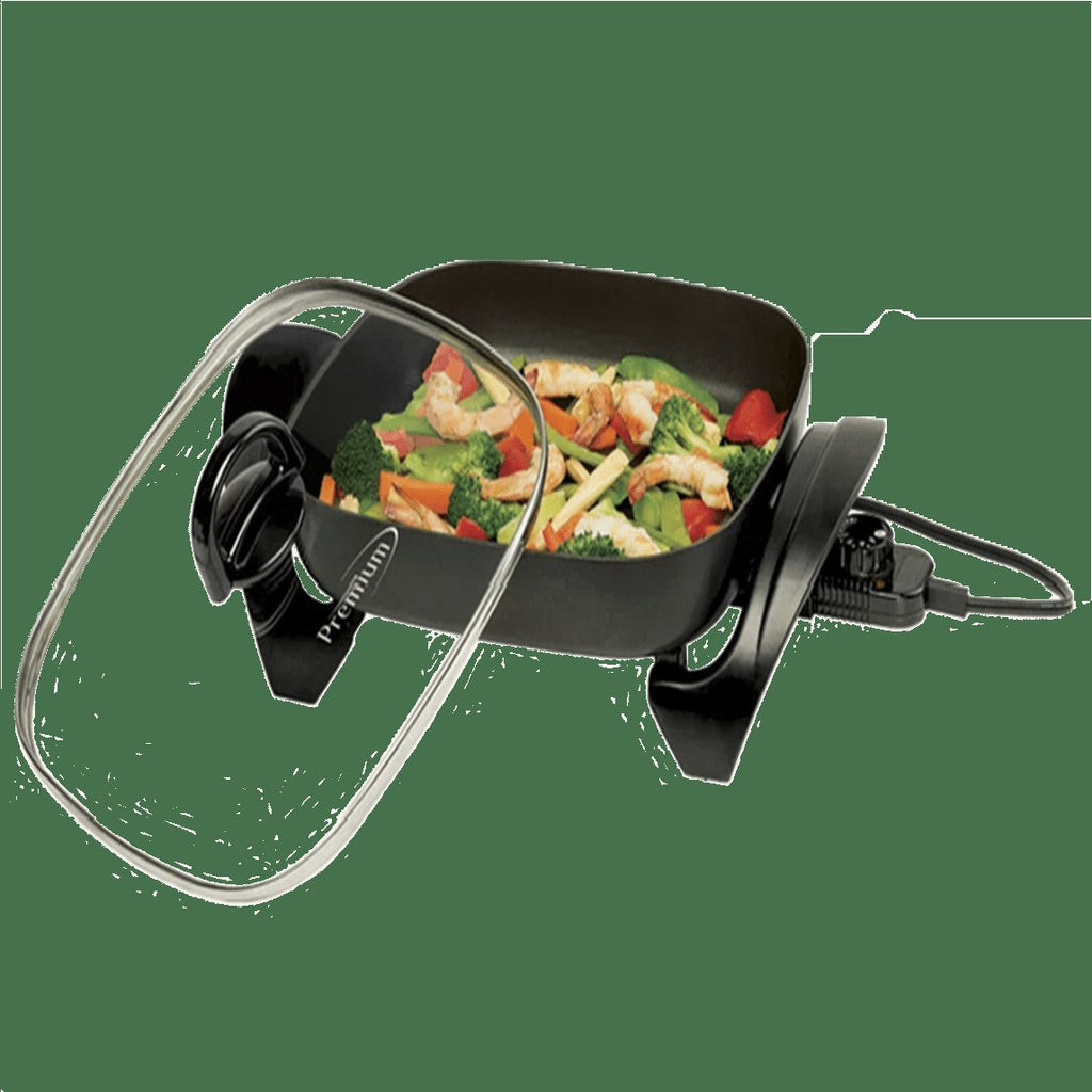 Premium -1200 W 12 inch Electric Skillet Non-Stick Coating High Domed Glass Lid