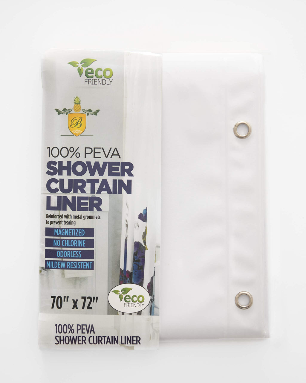 This 100% PEVA shower curtain is soft AND strong! 70"x72". Our Shower curtains stay in place due to magnetized weights. This liner is holes from tearing. 3 Magnets on the bottom keep the liner in place.Water Resistance - Our shower curtain ensures that water stays inside your shower space, effectively keeping your floors pristine and dry. This curtain acts as a reliable barrier against water spillage.Stable and Secure - Designed with integrated weights, our shower curtain remains firmly in place, preventing annoying cling and ensuring a private, protected shower experience. Ideal for homes, apartments, and dormitories.Effortless Cleaning - Crafted from eco-friendly, our shower curtain is not only free from chemical smells but also incredibly easy to maintain. Simply wipe with a damp cloth to keep it looking fresh and clean.Quick and Easy Setup - Installation is a breeze with our user-friendly design featuring durable grommets that accommodate most types of shower hooks. The reinforced top-header prevents tearing and ensures long-lasting performance.Sleek and Functional Design - Our shower curtain combines functionality with aesthetics, offering a translucent design that maintains privacy while allowing light to enter. The elegant appearance complements any bathroom décor, suitable for standalone use or with a decorative curtain.