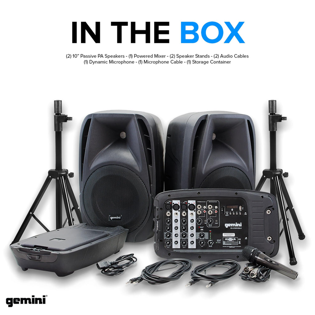 Professional PA System with 8-Channel Mixer - Gemini Sound Portable Dual 10" Speakers, 600W Amp, Bluetooth, USB/SD, Includes 2 Speaker Stands, Mic, and Durable Design for DJs, Musicians, and Events