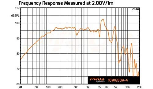 PRV AUDIO 10 Inch Woofer 10W650A-4 650 Watts Program Power, 4 Ohm, 2.5 in Voice Coil, 325 Watts RMS Pro Audio Speaker (Single)MADE FOY YOUR NEEDS: Audio experts and professional musicians know that tone can make or break a performance, in the studio or on the stage. That’s why PRV Audio’s Alto Series woofers were carefully crafted and voiced to create a natural, smooth sound while remaining dynamic.HIGH FIDELITY & HIGH OUTPUT: With 650 Watts program power and 97 db the 10W650-4 woofer speaker will sound amazing on your custom sound systemSOLID STRUCTURE: To get the right sound, a special composite cone is built with non-pressed paper (visible on the back side) for reduced break-up and smooth sound.DESIGNED FOR EFFICIENCY: A unique, woven-cloth dustcap helps to achieve high sensitivity by reducing moving mass, while helping to cool the voice coil.UPGRADE TODAY. HEAR THE DIFFERENCE: Alto Series woofers work remarkably well in vented and sealed cabinets, as woofers in two-way speakers or midrange speakers in three-way systems, and even shine when used as bass guitar and guitar speakers.