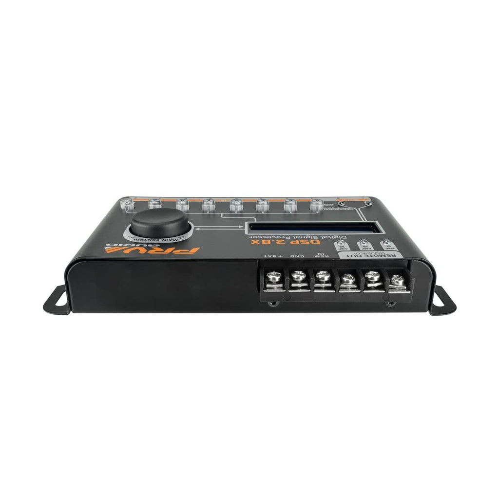 PRV AUDIO Car Audio DSP 2.8X Digital Crossover and Equalizer 8 Channel Full Digital Signal Audio Processor DSP with Sequencer Remote Relay