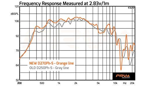 PRV AUDIO D270Ph Compression Driver 1" Exit Phenolic Driver for Vocal Reproduction, 2" Voice Coil 150 Watts 8 Ohms Improved Performance on New Compact Design (Single)HIGH OUTPUT & LOW DISTORTION: the D270Ph-S PRV 1” Exit phenolic driver is a new and improved compact driver that is all about high output and low distortion vocal reproduction all the way down to 500 Hz!SOLID STRUCTURE: High temperature copper wire is used for the voice coil that is wound on a Kapton former to withstand high operating temperatures. New and improved design based on our D250Ph-SDESIGN FOR EFFICIENCY: 2.55 inches of front mount baffle cutout, the small diameter of the driver allows front mounting, making it easy to install, without detaching the driver from the horn. Compact driver size is perfect for conditions where space is a concernPOWER YOU CAN RELY ON: Comparison with old D250Ph-s with the new D270Ph-S improved performance. Designed to reproduce the all-important vocal range with authority! Ideal driver for mid range and vocal reinforcementUPGRADE TODAY, HEAR THE DIFFERENCE: This mid range compression driver and horn is a great choice for high power public address (PA) Systems small venues and gymnasiums. Car audio SPL enthusiasts use this combo for vocal reinforcement on 3 way systems