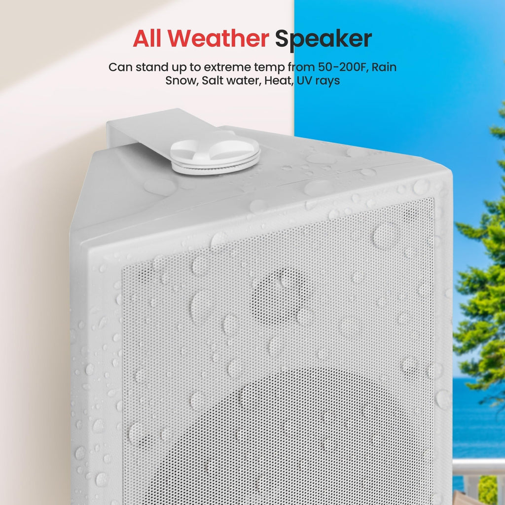 - ALL WEATHER DESIGN: The materials used for these mountable speakers can stand up to extreme temp from 50-200F, rain, snow, salt water, heat, UV rays. Constructed w/ a combination of brass, aluminum and stainless hardware, gold-plated plug terminals