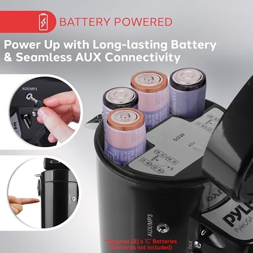 - SIREN ALARM MODE: Amplifies an emergency tone with adjustable volume control through the megaphone speaker Pyle PMP53IN megaphone bullhorn needs 8C batteries; It has a built in siren so you can get everyone’s attention fast Be heard loud and clear