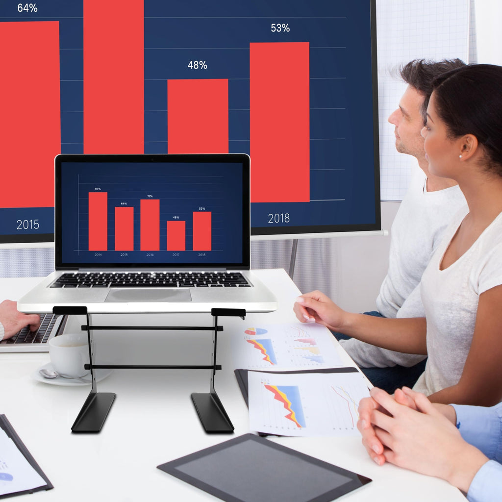 - UNIVERSAL USE: Compact laptop or desk stand with rugged, reliable and ergonomic design for universal use. It can be used with computers, laptops, DJ equipment, turntables, and more. Perfect for the home, office, school or business use