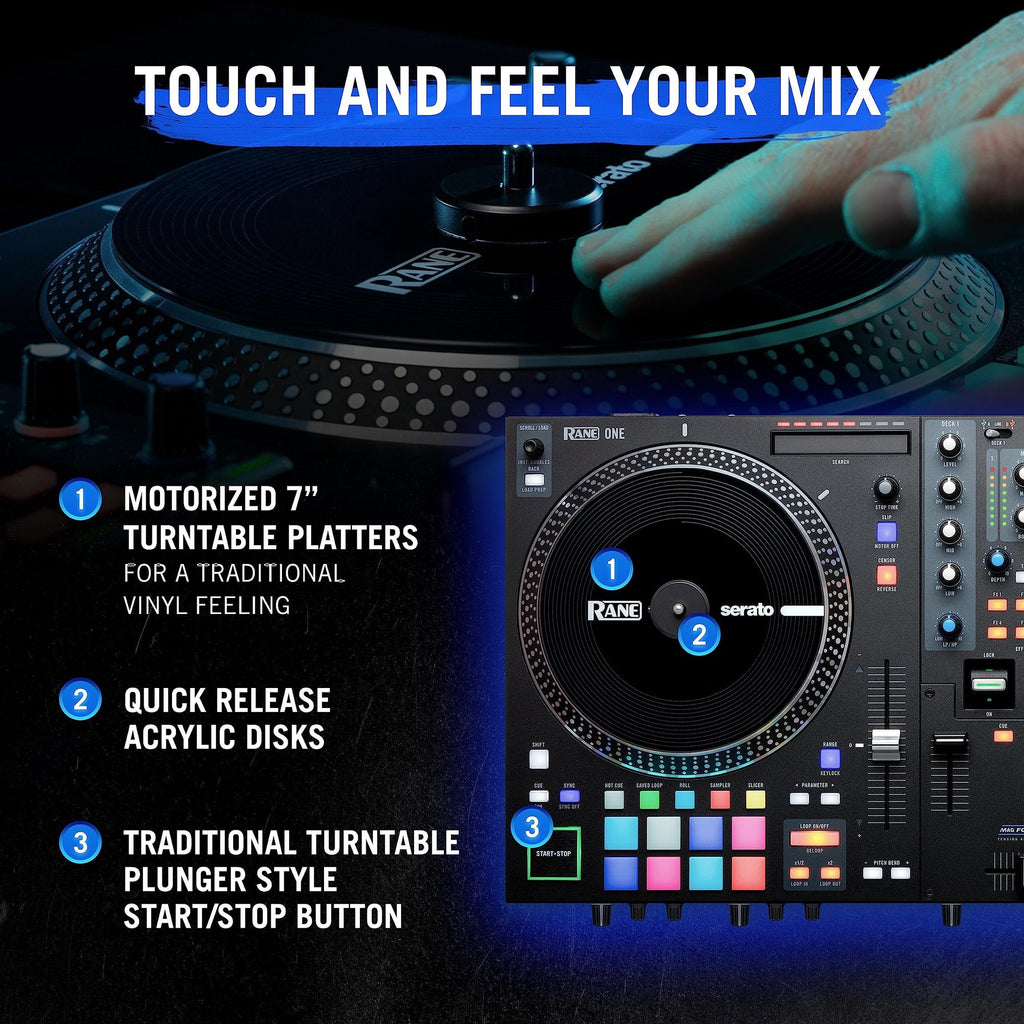 RANE ONE - Complete DJ Set and DJ Controller for Serato DJ with Integrated DJ Mixer, Motorized Platters and Serato DJ Pro Included