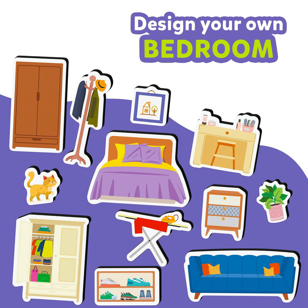Enter the world of Magnetopia, where your imagination can run wild! Design your own house - decorate your own living room and bedroom, transform a room into your pup's playroom, or build yourself a room of toys! This magnetic playset includes over 60 pieces to create your dream home! With furniture, toys, plants, pets, and more - there are endless opportunities to stretch your imagination and creativity!