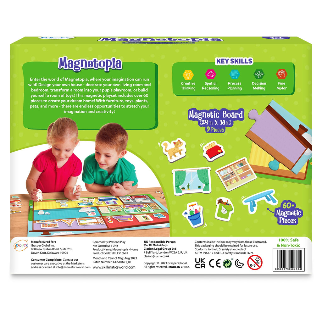 - DEVELOPS KEY SKILLS: Skillmatics Magnetopia is designed to foster the development of essential skills in young children, including creative thinking, spatial reasoning, decision making and fine motor skills.