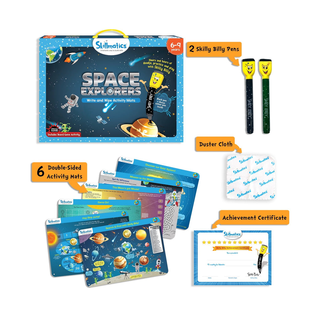 Skillmatics Educational Game - Space Explorers, Reusable Activity Mats with 2 Dry Erase Markers, Gifts for Ages 6 to 9