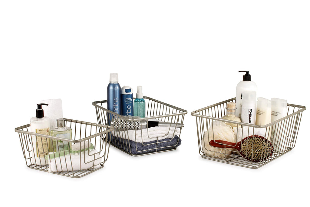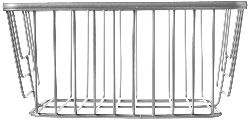 - STORE A VARIETY OF ITEMS: Sturdy steel with smooth welds makes this basket appropriate for a variety of items. Slide a basket full of scarves or hats onto your front closet’s shelf, keep bath accessories nearby with open storage, or tidy up your pantry by storing all your snacks inside. The durable construction and stylish design make this basket appropriate for storage in any room—from the kitchen to the garage.